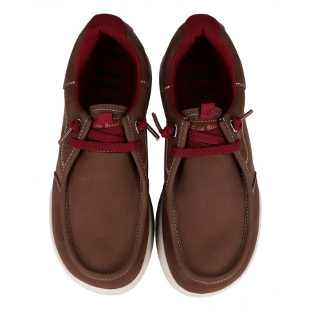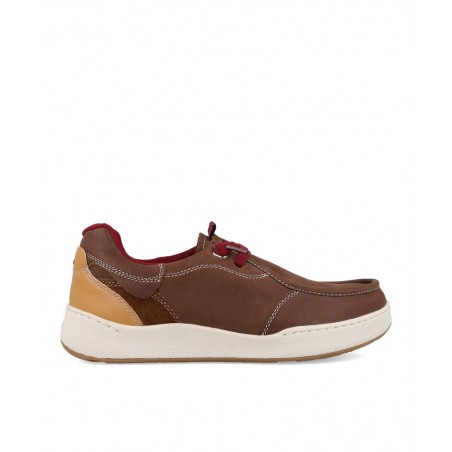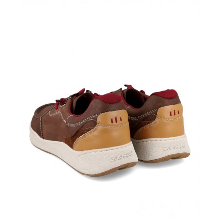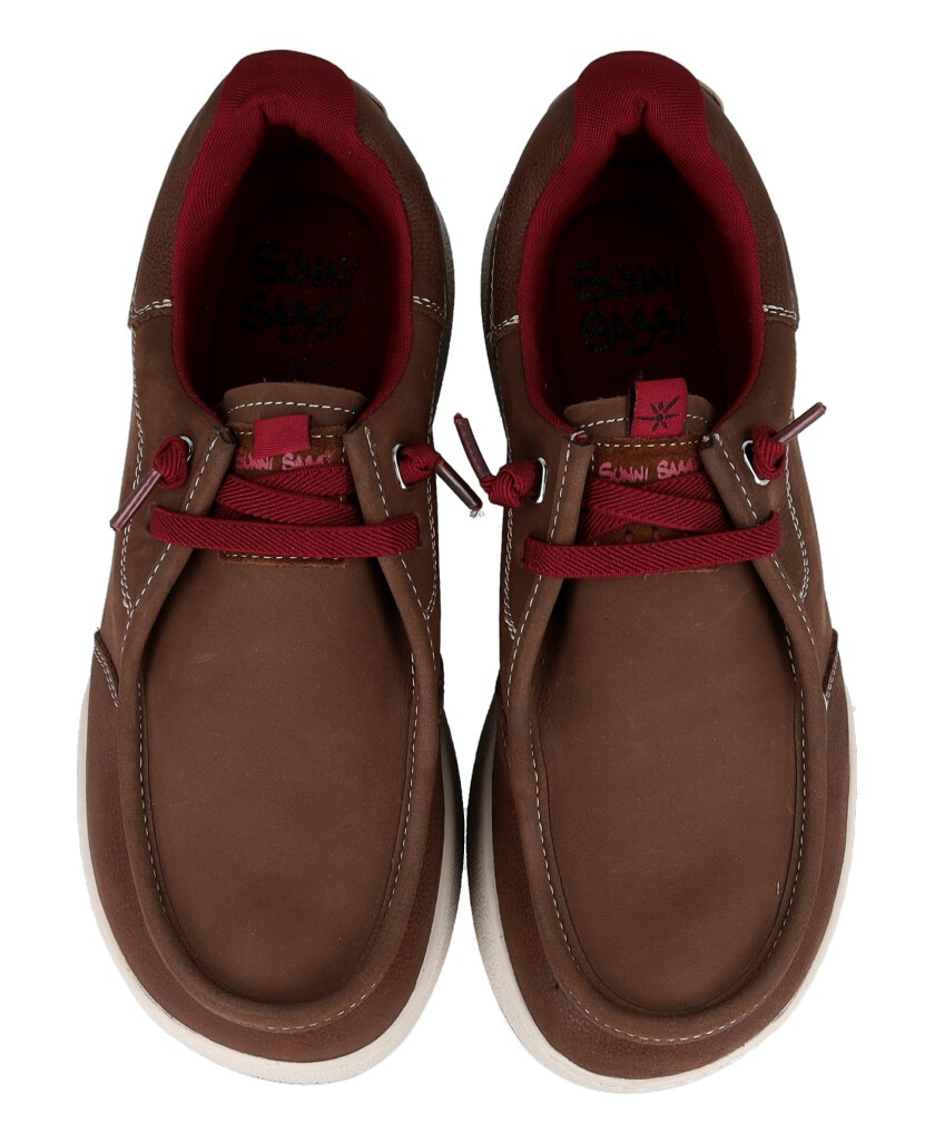 Sunni Sabbi Shiro 020 casual leather shoes for men in brown with mustard detailing at the back. Features: sports-style shoes with red elastic laces, 3 cm heel, casual style, rubber sole, suede leather upper with padded, removable insole.