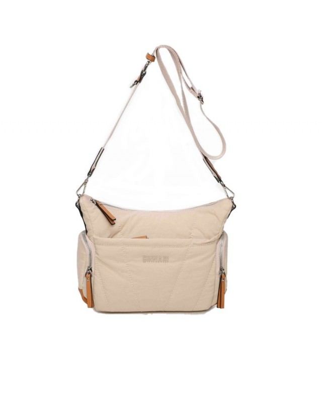 The Binnari Yuca 21162 bag in beige with camel details is the ultimate everyday accessory. A women's crossbody bag that stands out for its functional design, lightweight feel, and multiple pockets, perfect for those who prioritize organization and comfort.