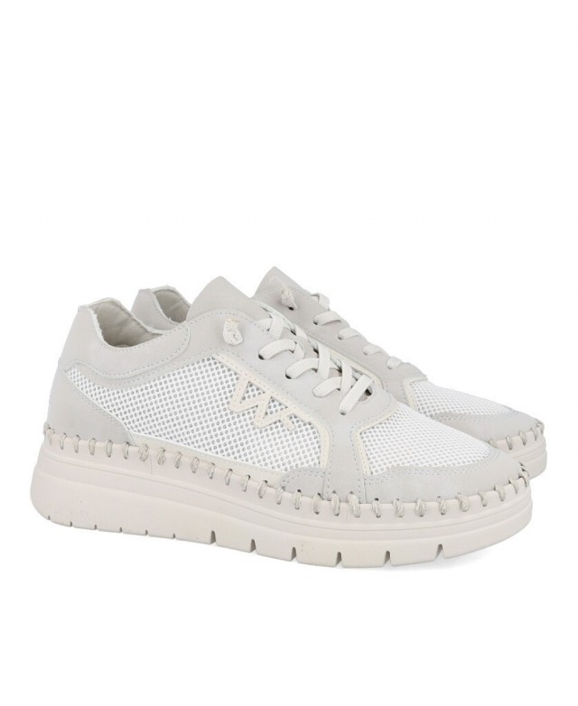 The Walk&Fly 20103 model is the answer for the modern woman on the go. These elastic lace sneakers stand out for their extreme lightness and a radiant white color that becomes the perfect match for any spring or summer outfit. Their textile construction ensures the foot stays cool and comfortable even on the busiest days.