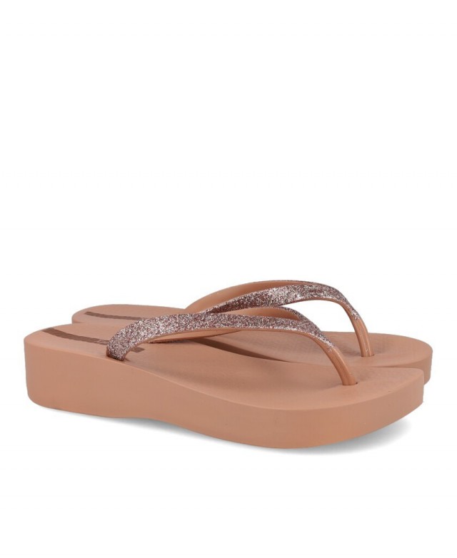 Join the platform flip-flops trend with the Ipanema Mesh 83386. Its neutral beige tone is extremely versatile, allowing you to pair these women's sandals with sundresses, shorts, or swimwear, always adding a touch of sophistication thanks to the subtle shimmer effect on the straps.
