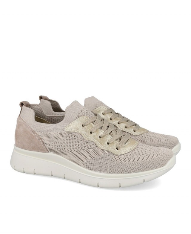 The Imac 106210 women's trainers define the perfect balance between style and well-being. These beige women's sneakers feature a sophisticated design and an internal wedge that slims the silhouette, making them the ideal lace-up shoes for those seeking extra comfort without giving up current trends.