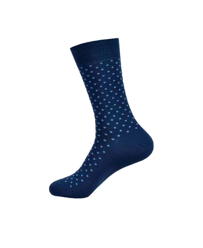 Calcetines de hombre Bellido 6000501/12 en color azul marino con topos en celeste. Características: Calcetines de media caña con puño antipresión, sin costuras. Composición: 78%Algodón Peinado,20% Poliamida, 2%Elastano.