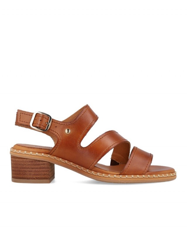 Las sandalias Pikolinos Blanes en color cuero (W3H-1635) son el básico atemporal que no puede faltar. Su tono natural resalta la autenticidad de la piel vacuno 100%, ofreciendo un calzado de tacón cómodo y versátil que combina con todo tu armario.